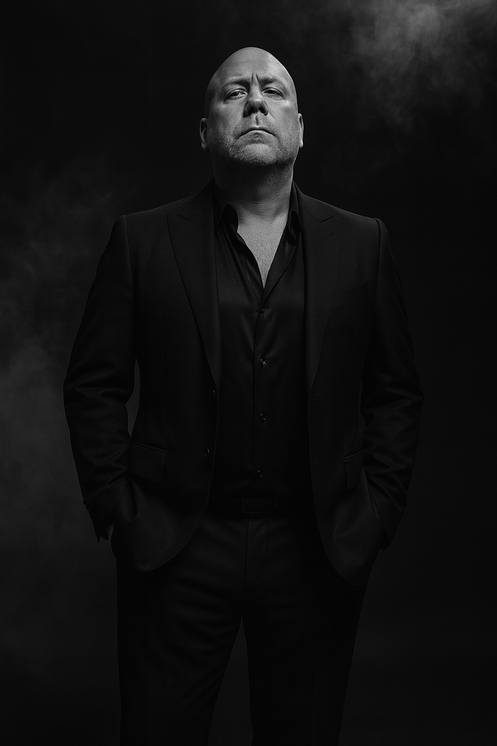 Hands in pockets - relaxed authority. A hyper-realistic cinematic editorial portrait ot the uploaded person (preserve face 100%). He stands tall in a dark, moody studio, […]