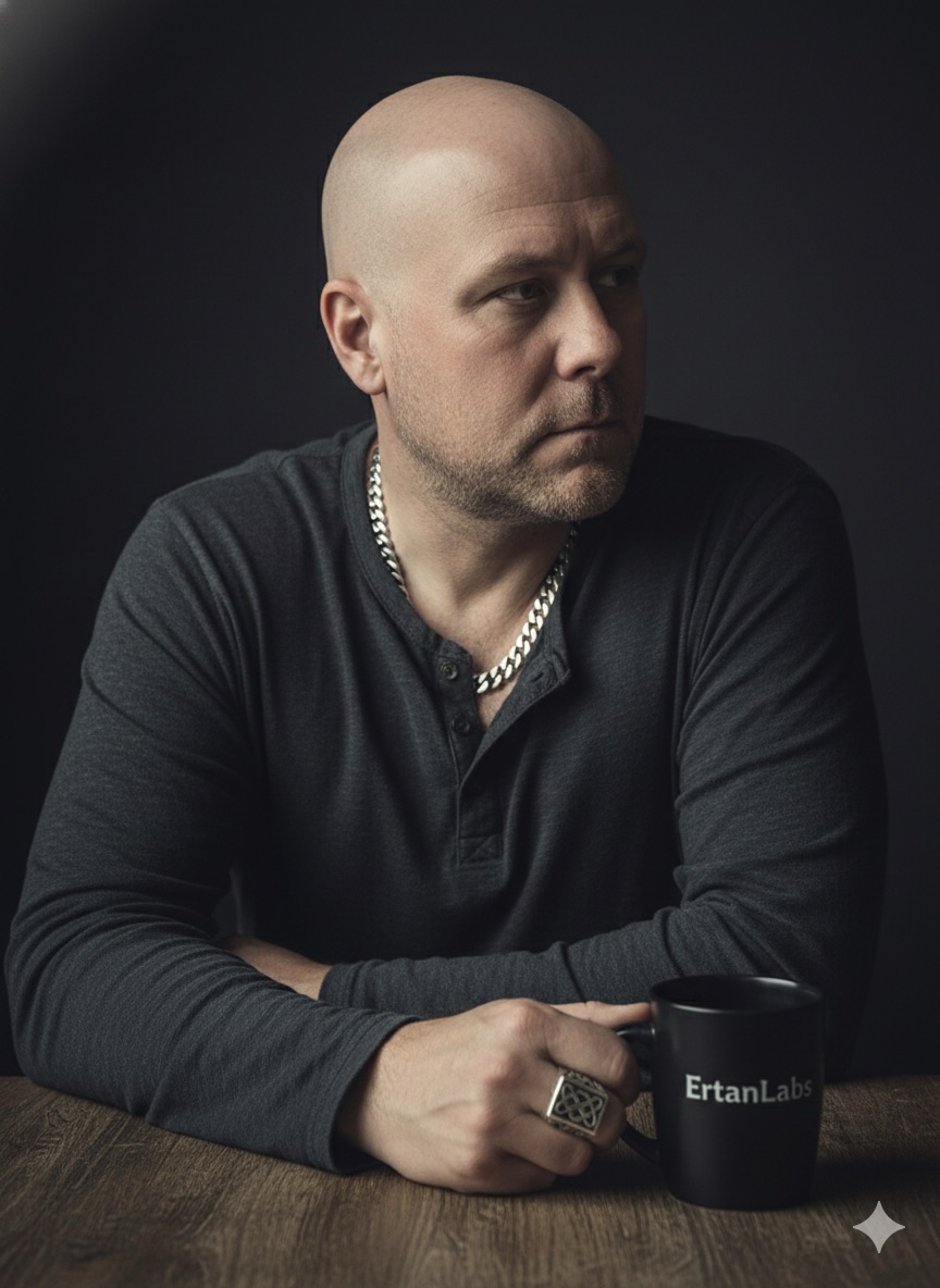 A cinematic portrait of myself, keeping my real face completely unchanged. I am sitting at a wooden table, leaning slightly forward, with my right forearm resting […]