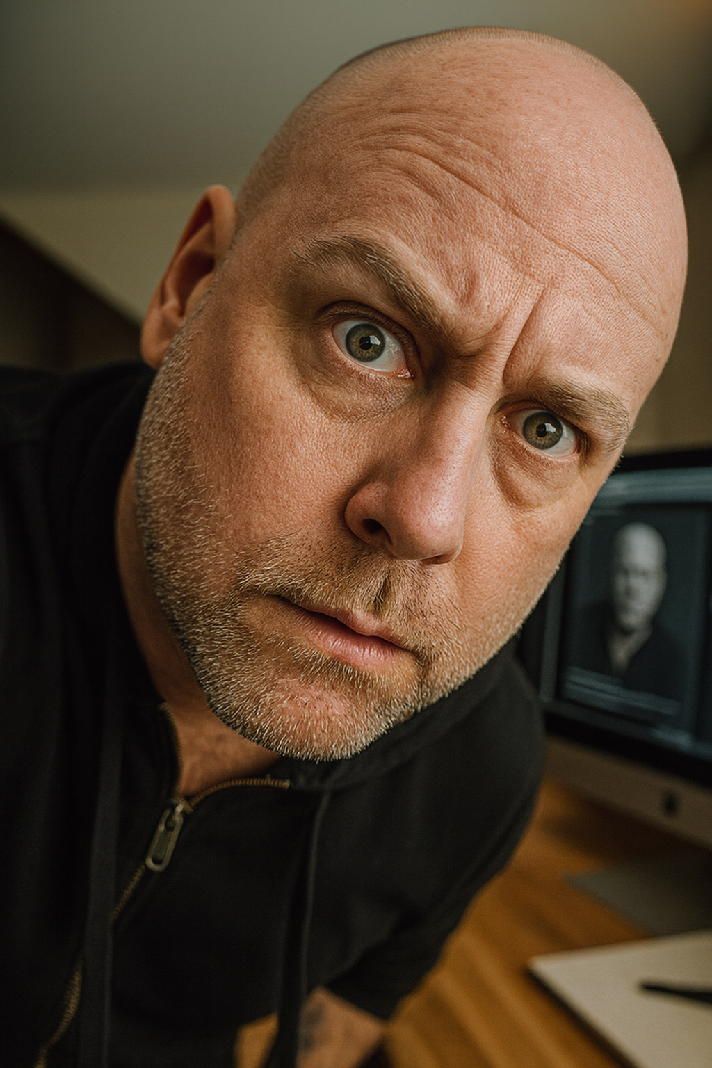 A CURIOUS [CHARACTER NAME] LEANS UNCOMFORTABLY CLOSE TO THE CAMERA, HEAD TILTED AS IF HE'S JUST BEEN KNOCKED OFF TO THE SIDE. HIS FACE FILLS ALMOST […]