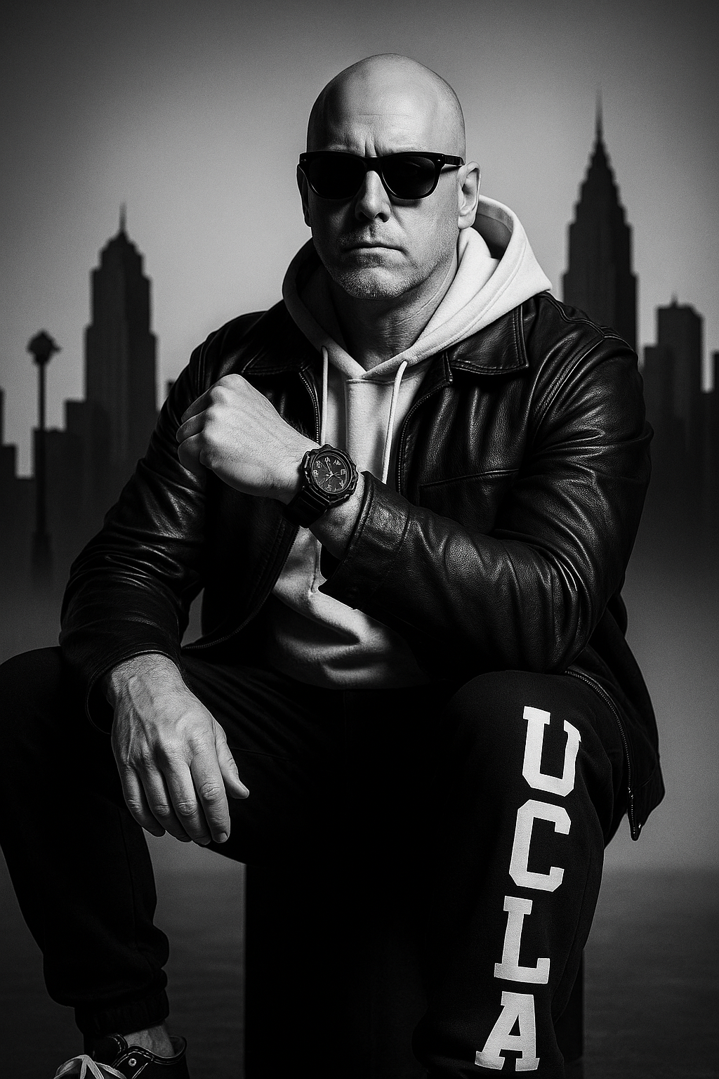 A highly stylized, cinematic portrait of a confident young man sitting against a glowing monochrome backdrop with gradient lighting in shades of black, gray, and white. […]